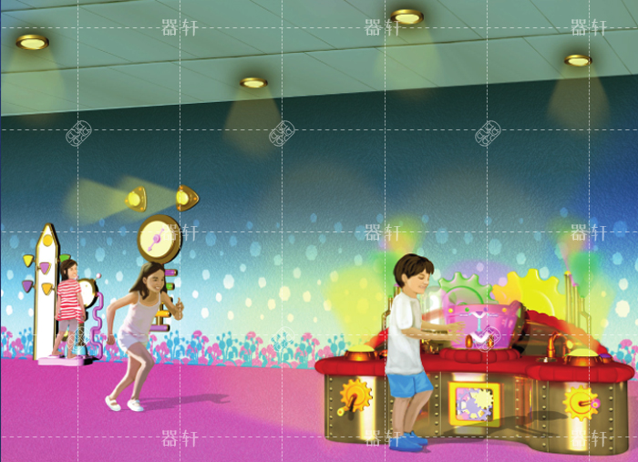 齿轮墙是项齿轮互动活动,小朋友通过往墙上增加齿轮触发机器的其他功能。外墙上的齿轮全部正确到位之后,内部